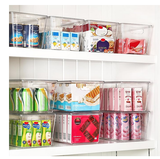 For households with kids or areas that get heavy daily use, I recommend these types of clear bins. They’re lightweight but sturdy, easy to clean, and available in multiple sizes. Most sets come with label holders, or sticker labels, which makes it simple to switch things up as your needs change. I also love these different options some with drawers,lids, and no lids.- 6 Pack Clear Stackable Storage Drawers, 4.4'' Tall Acrylic